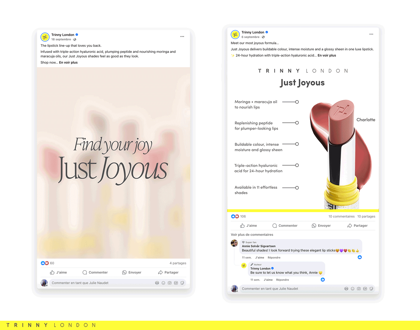 During my time at Trinny London, I contributed to various product launch campaigns, focusing on editorial and social media platforms. My work included creating diverse assets such as stills, animations, and 3D motion designs. Each project was crafted to enhance the brand’s visual storytelling and deliver engaging content across multiple channels.